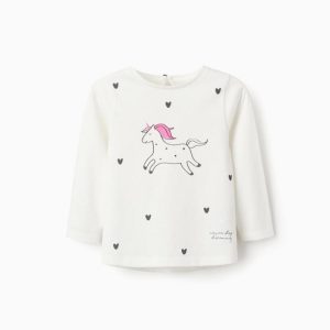 Camiseta de manga larga para bebé niña «Unicornio» blanco