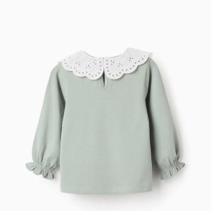 Camiseta de manga larga con bordado inglés para bebé niña | Color Verde