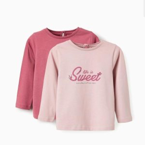 Pack 2 camisetas de manga larga de algodón para bebé niña | Color Rosa