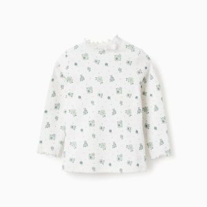 Jersey canalé floral de manga larga para bebé niña | Color Blanco