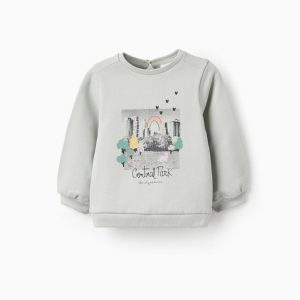 Sudadera perchada para bebé niña «Nueva York» Verde Agua