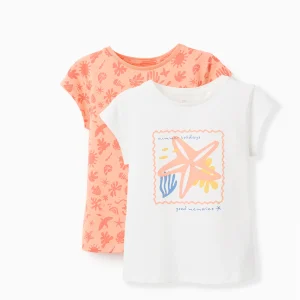 Pack 2 Camisetas de Algodón para Niña ‘Summer’, Coral/Blanco