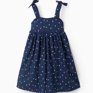 Vestido de Popelín a Lunares para Niña, Azul Oscuro
