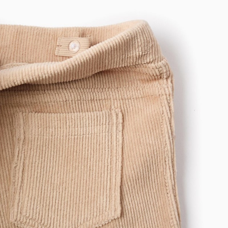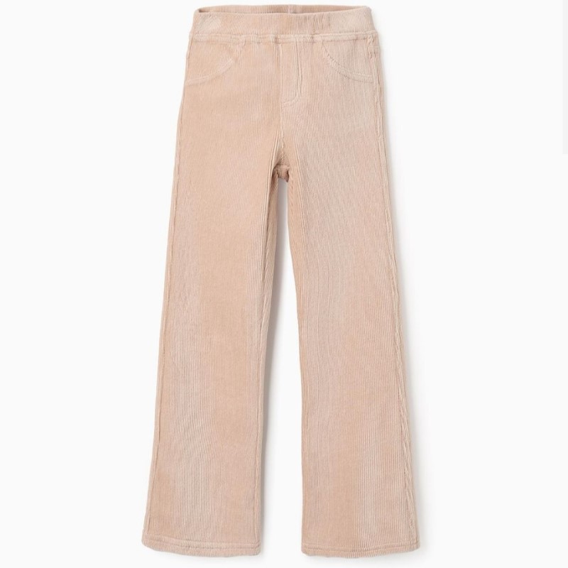 Jegging beige de pana para niña, con tejido elástico e interior afelpado.