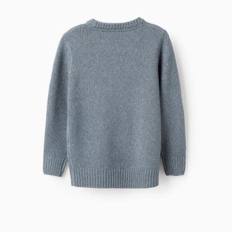 Jersey de punto azul para niño, con mezcla de punto blanco. Puños acanalados para un ajuste perfecto.