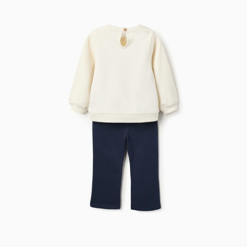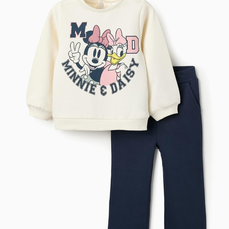 Conjunto de dos piezas para bebé niña, con interior de punto suave para mayor comodidad. Está compuesto por una sudadera 100% algodón con estampado frontal de minnie y margarita. Puños acanalados para un ajuste perfecto.